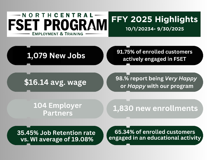 WestCentral FSET Services began October 2024 - Outcomes will be reported in October 2025!
